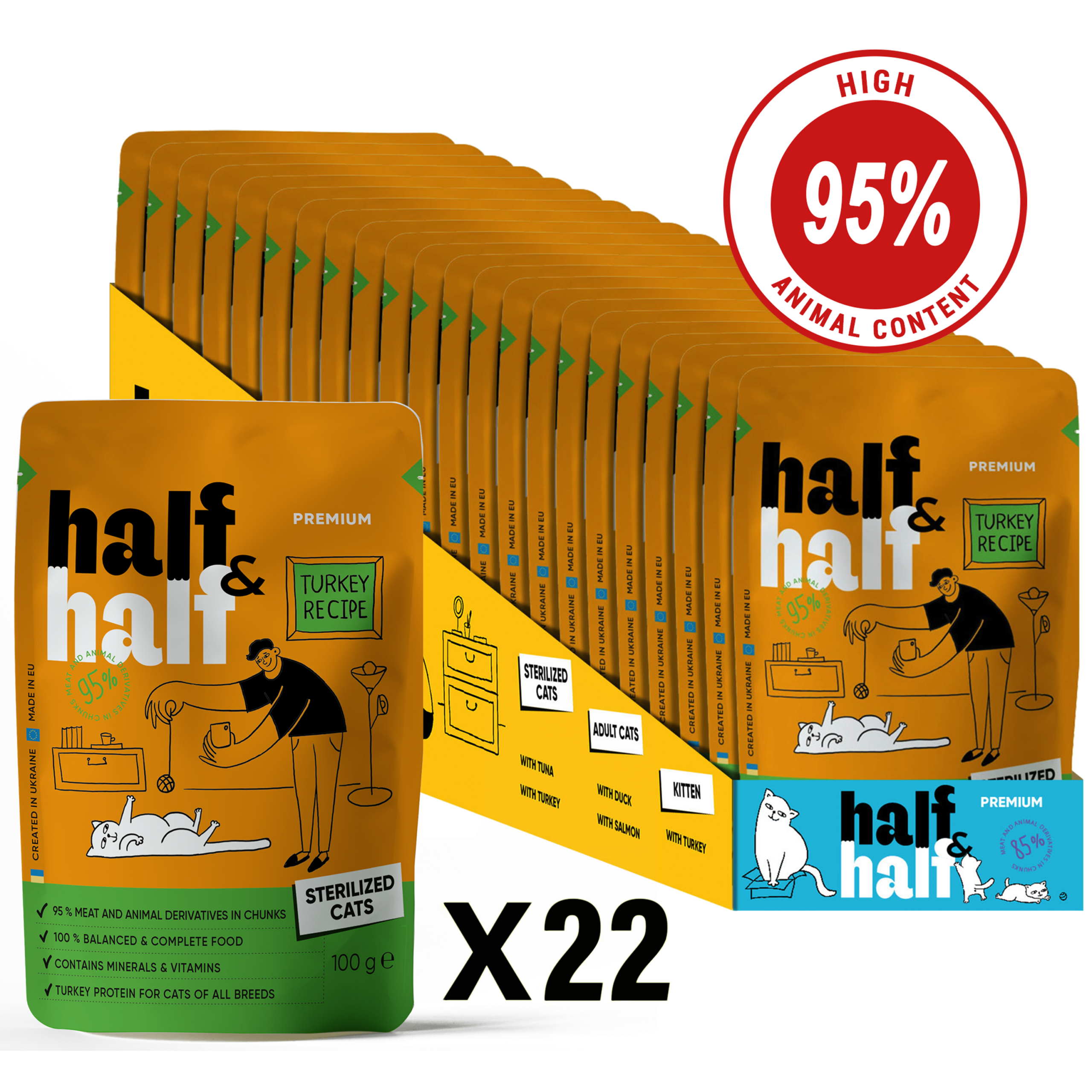 Half&Half Sterilized Cat Wet Food with Turkey in Jelly 100g x22