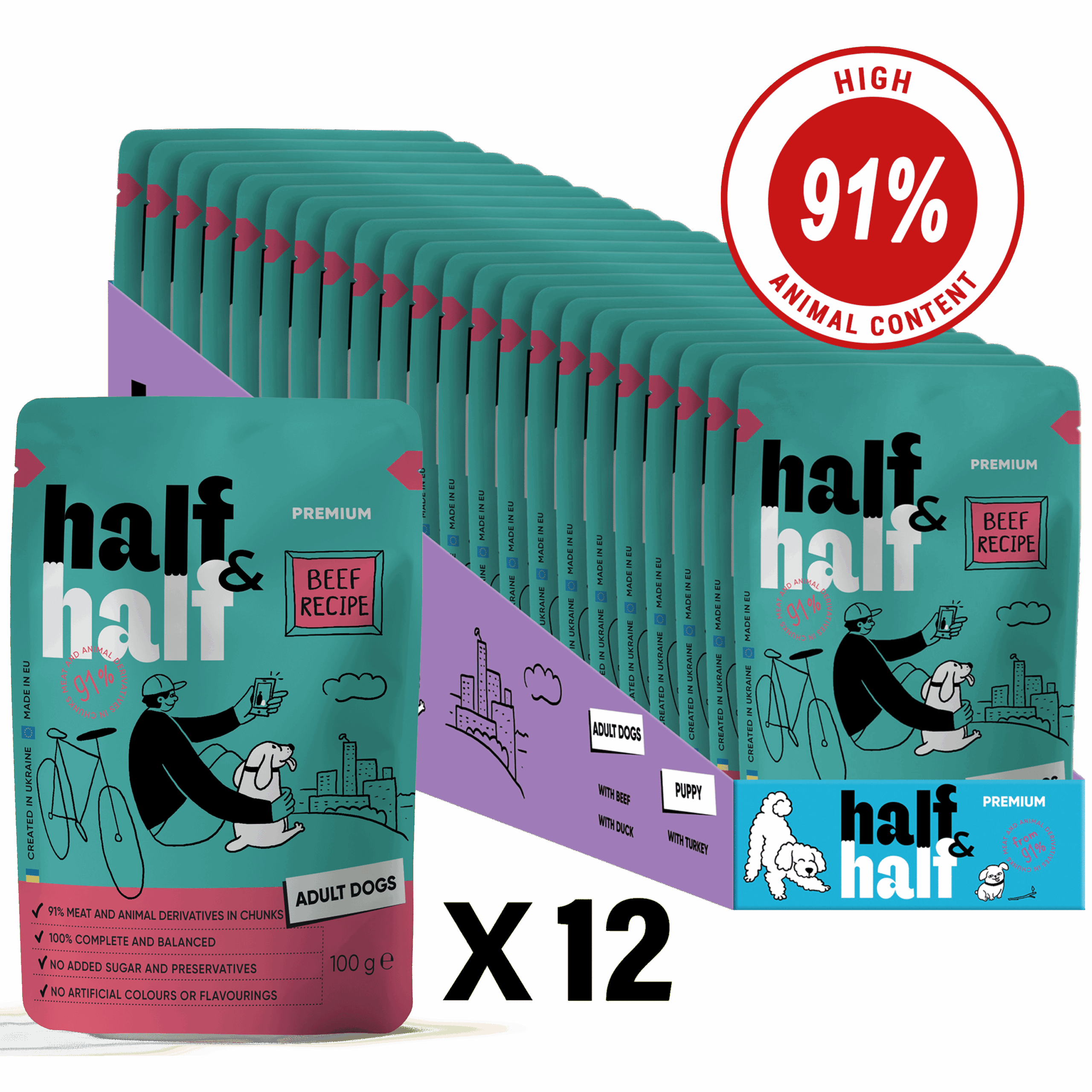 Half&Half Adult Dog Wet Food with Beef in Sauce 100g x12