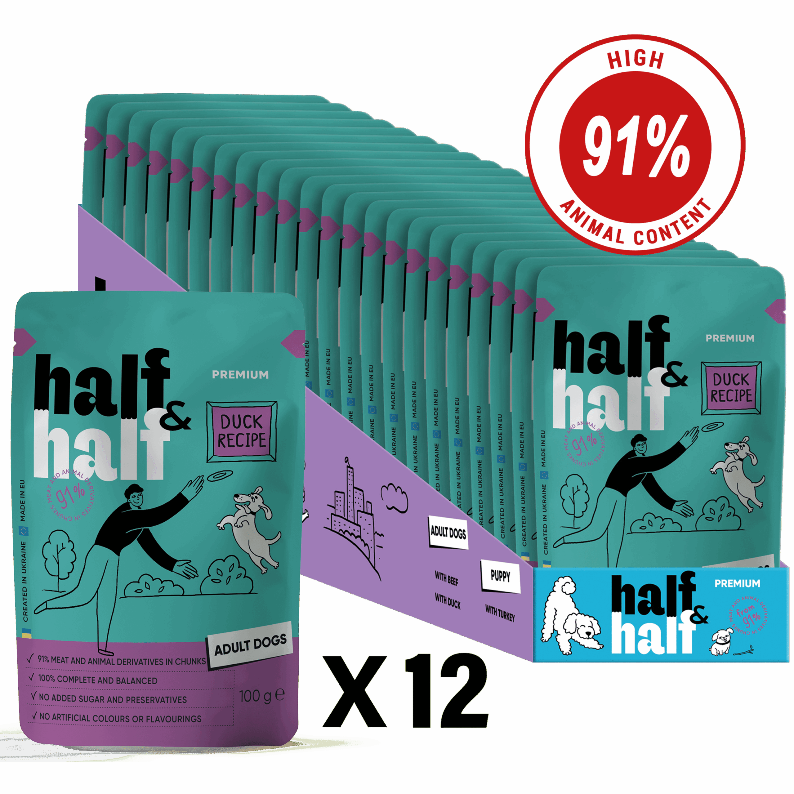 Half&Half Adult Dog Wet Food with Duck in Sauce 100g x12