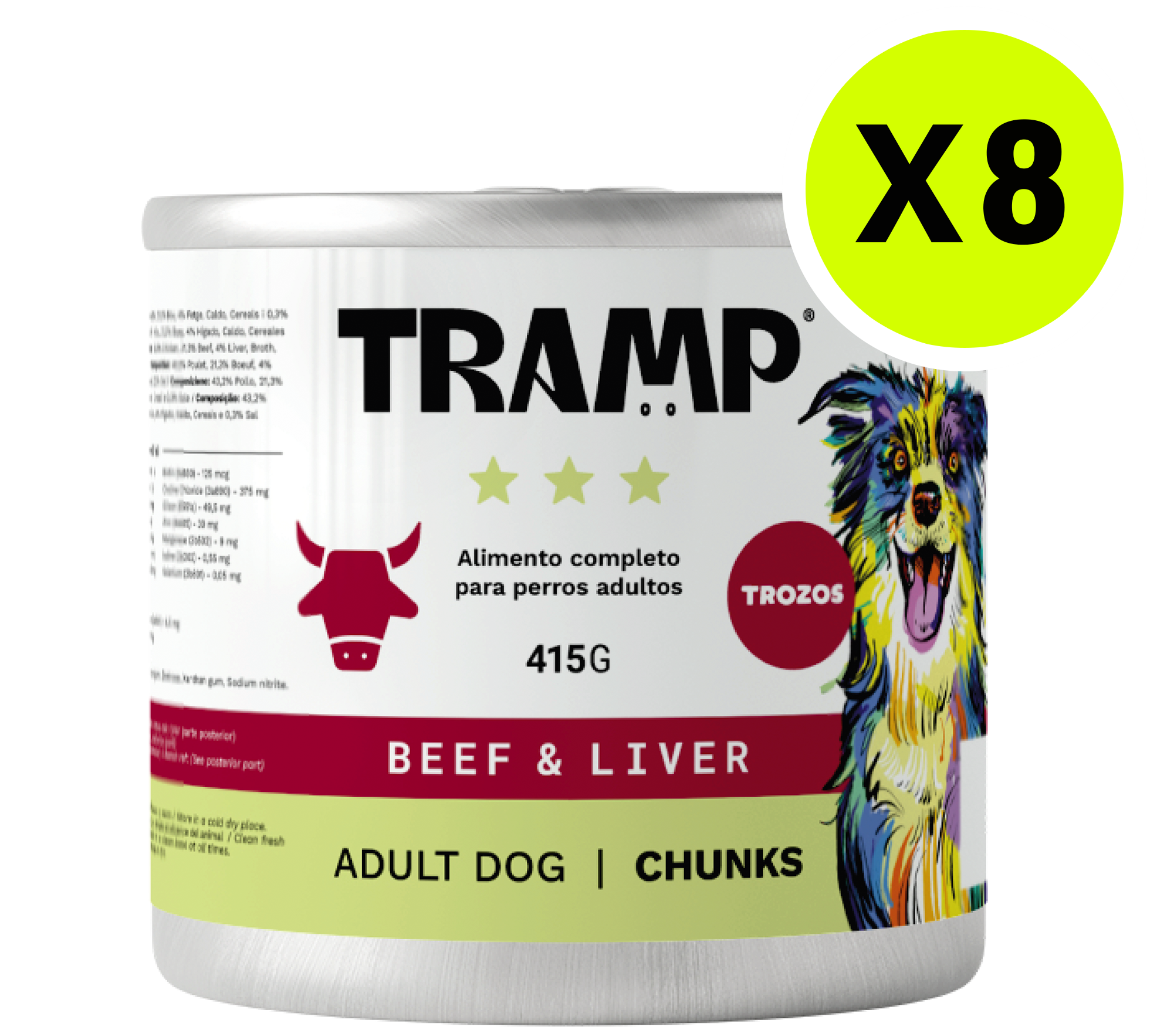 TRAMP Adult Dog Chunks Beef & Liver 415g x8