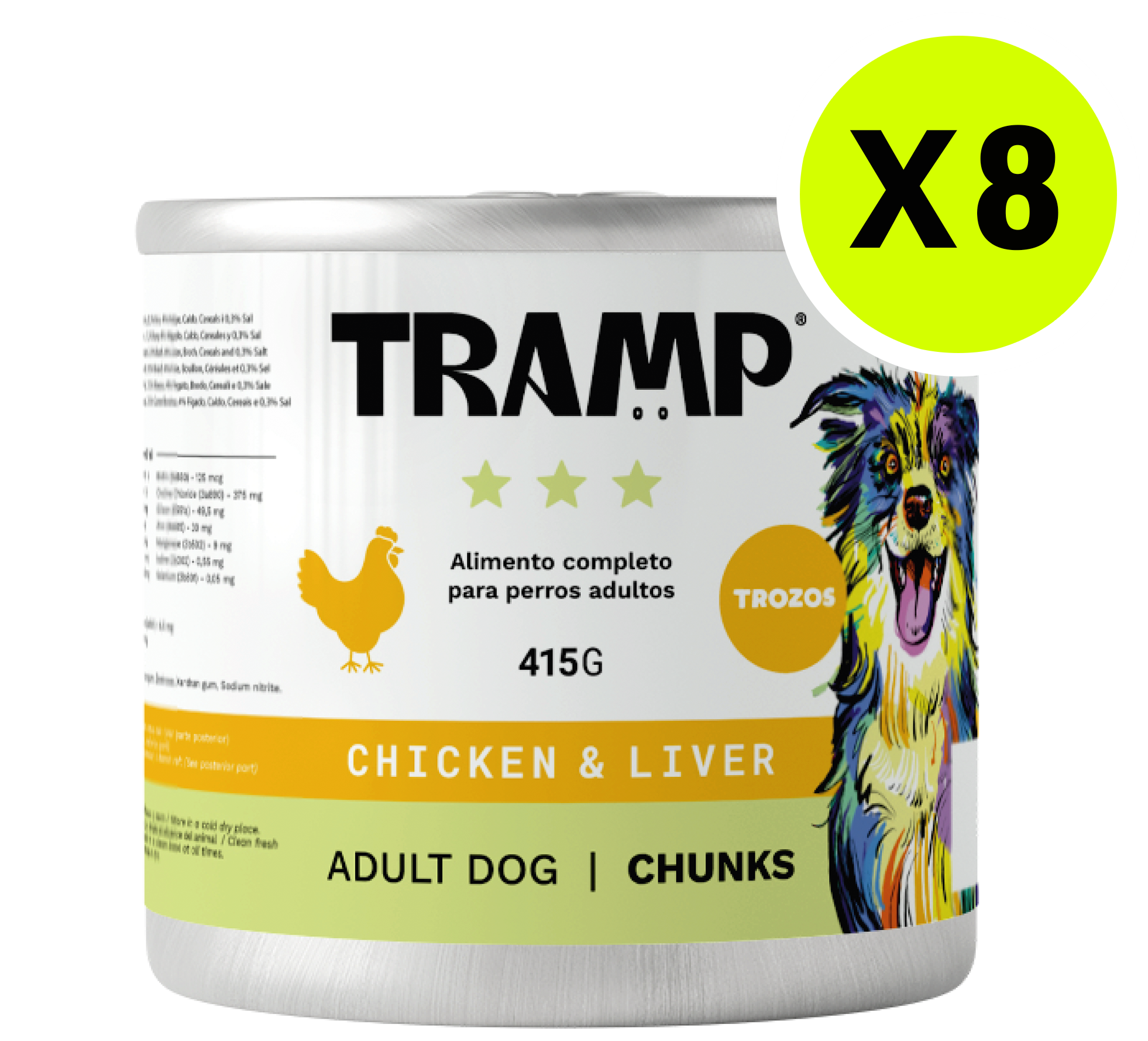 TRAMP Adult Dog Chunks Chicken & Liver 415g x8