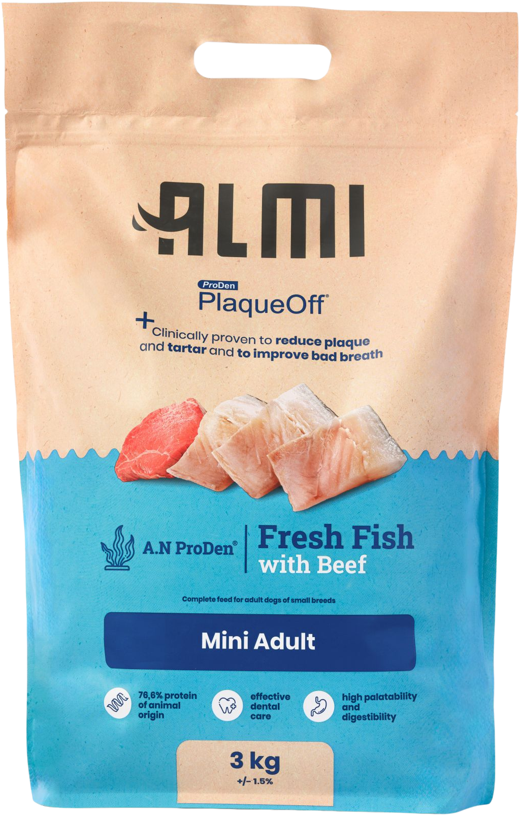 ALMI Dry Dog Food with Fish & Beef – Balanced Nutrition with ProDen PlaqueOff®