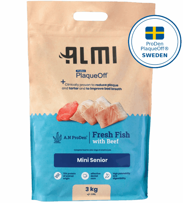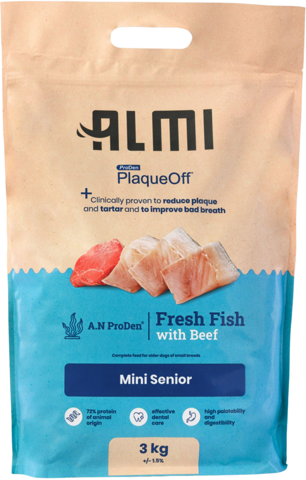 ALMI Mini Senior Dry Dog Food with Fish & Beef – Joint, Digestion & Vitality Support with ProDen PlaqueOff®