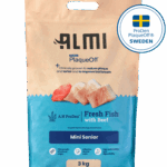 ALMI Mini Senior Dry Dog Food is carefully formulated to meet the specific nutritional needs of older, small-breed dogs. This balanced senior recipe features fresh fish meat rich in natural omega-3 fatty acids to support joint mobility and overall vitality during the ageing process.