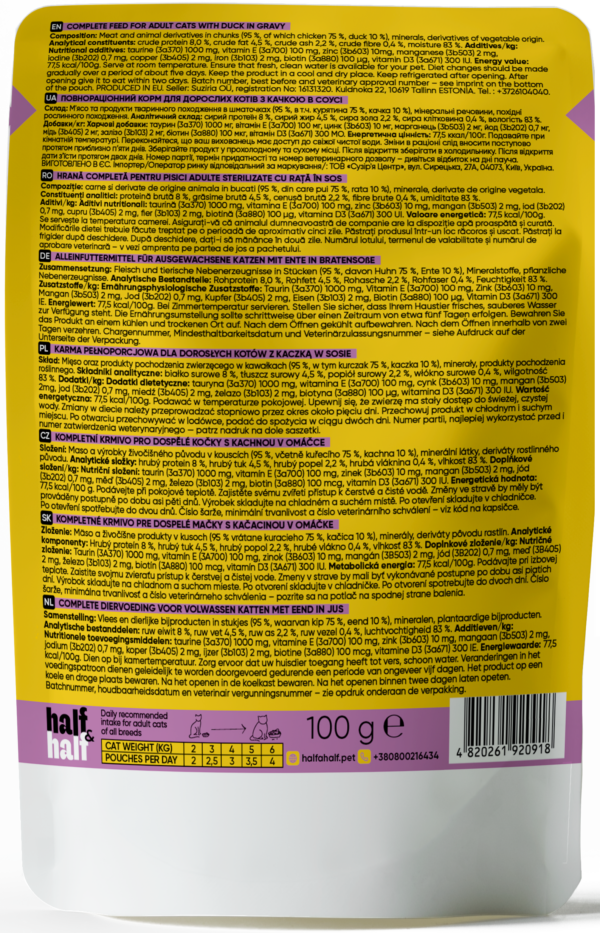 Half&Half Adult Cat Wet Food with Duck in Sauce – Complete Nutrition & Hydration Support