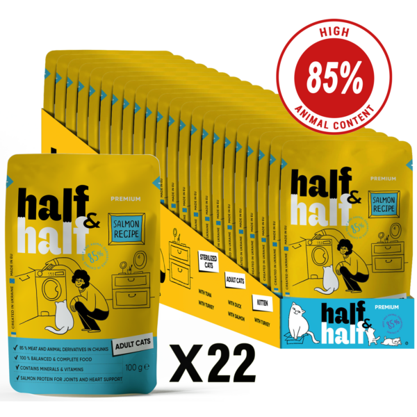 Half&Half Adult Cat Wet Food with Salmon in Jelly 100g x22