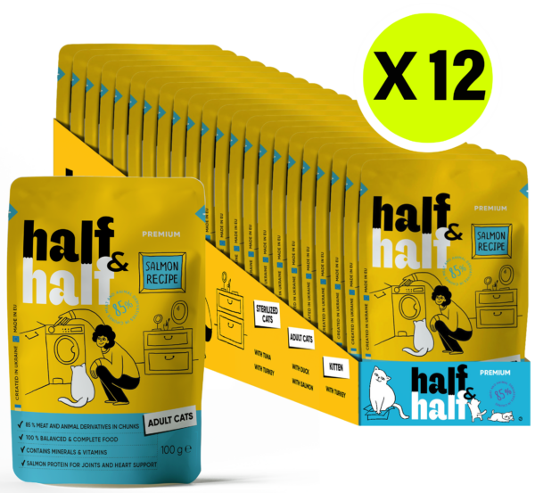 Half&Half Adult Cat Wet Food with Salmon in Jelly – Complete Nutrition & Hydration Support