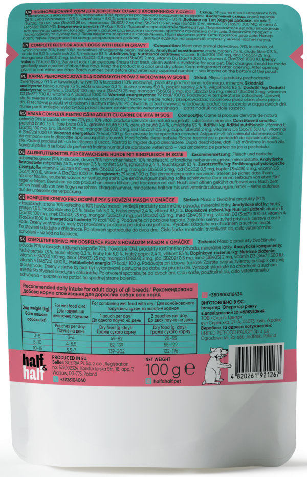 Half&Half Adult Dog Wet Food with Beef in Sauce – Premium Complete Nutrition for Adult Dogs