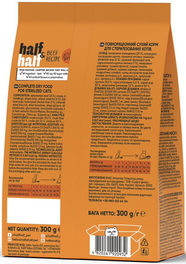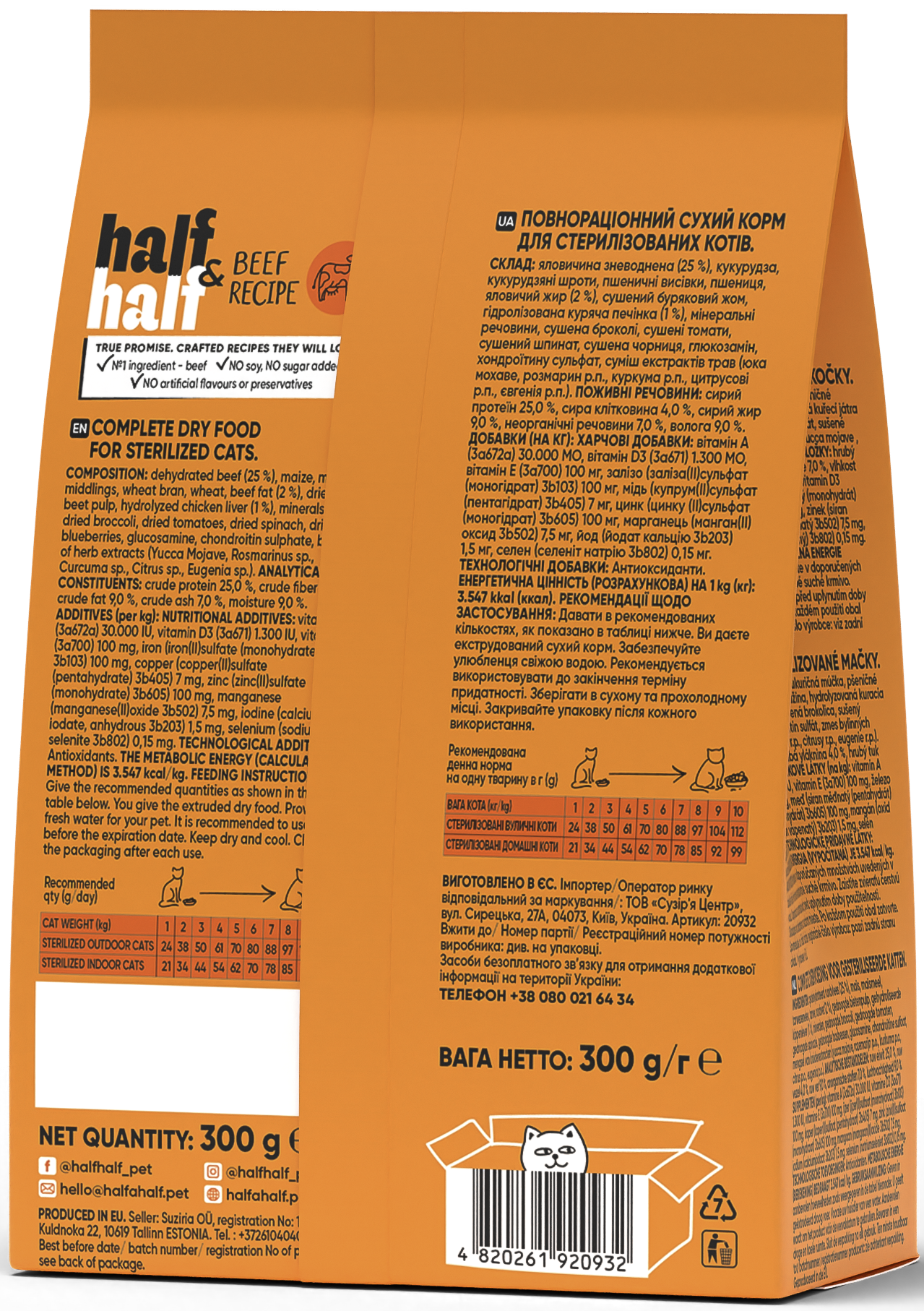 Enriched with fruits, vegetables, chondroprotectors and medicinal plants, the Half&Half formula ensures optimal nutrition and taste in each serving.