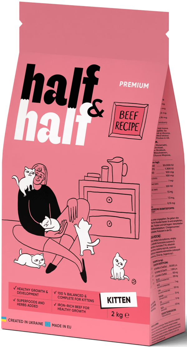 Enriched with fruits, vegetables, chondroprotectors and medicinal plants, the Half&Half formula ensures optimal nutrition and taste in each serving.