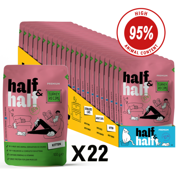 Half&Half Kitten Wet Food with Turkey in Jelly – Complete Growth Nutrition & Hydration Support