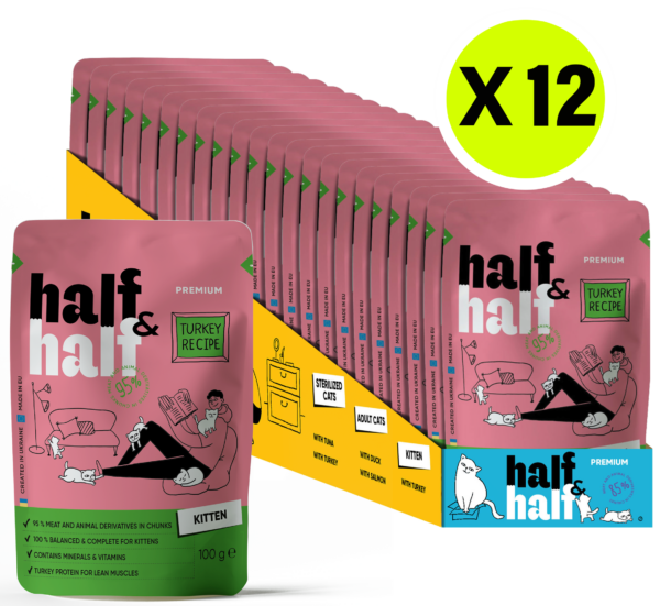 Half&Half Kitten Wet Food with Turkey in Jelly – Complete Growth Nutrition & Hydration Support