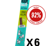 Half&Half Meat Stick for Puppies is a complementary food designed to be used as a treat for rewarding and reinforcing desired behaviours during early training and socialisation. Thanks to its soft, juicy texture, the stick can be easily broken into smaller pieces for miniature breeds or given whole to larger puppies, making it suitable for puppies of all sizes.
