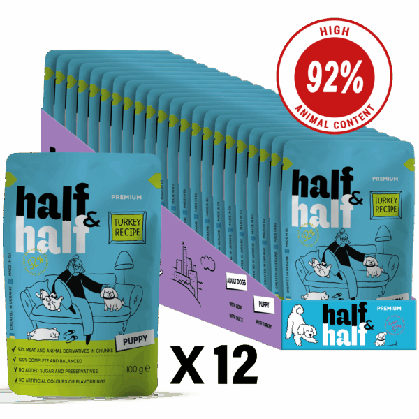 Half&Half Puppy Wet Food with Turkey in Sauce – Premium Complete Nutrition for Growing Puppies