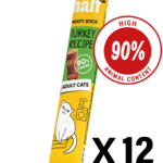 Half&Half Turkey Meat Sticks for Adult Cats are a complementary food for adult cats, designed as a natural and tasty reward to supplement the daily diet. With their soft, juicy texture, these meat sticks can be easily broken into smaller pieces or offered whole, making them convenient for everyday treating and rewarding.