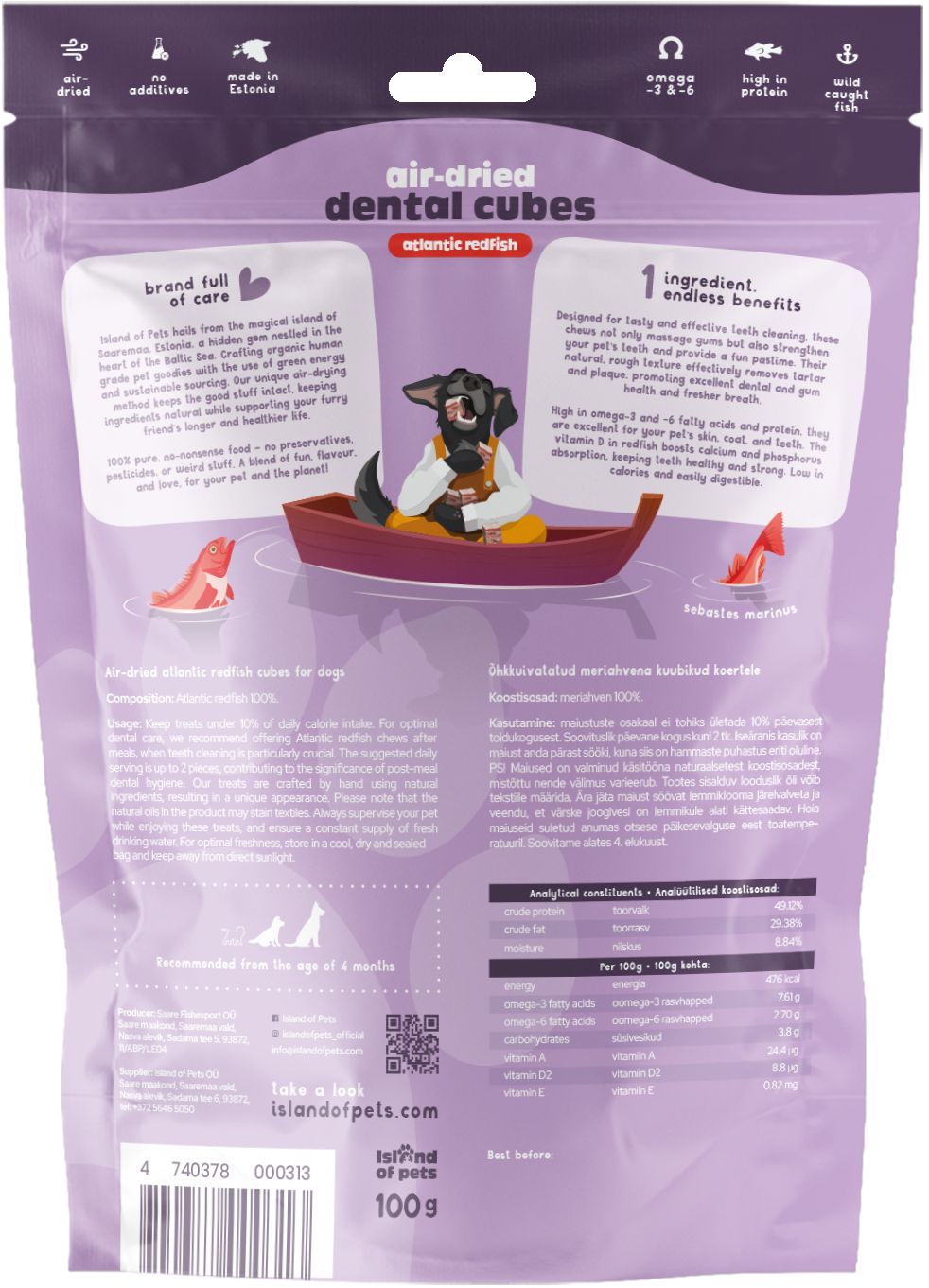 Be the first to review “Island of Pets Air-dried Dental Cubes Atlantic Redfish 100g”