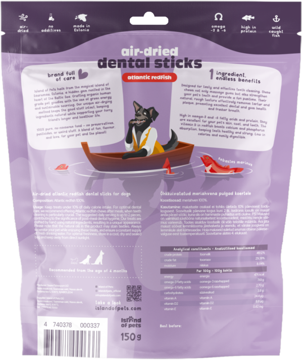 Rich in omega-3 & omega-6 fatty acids and high-quality protein, they support skin health, coat shine, and strong teeth. Redfish is low in calories, easily digestible, and suitable even for pets with sensitivities. Vitamin D supports calcium and phosphorus absorption, keeping teeth strong and healthy.
