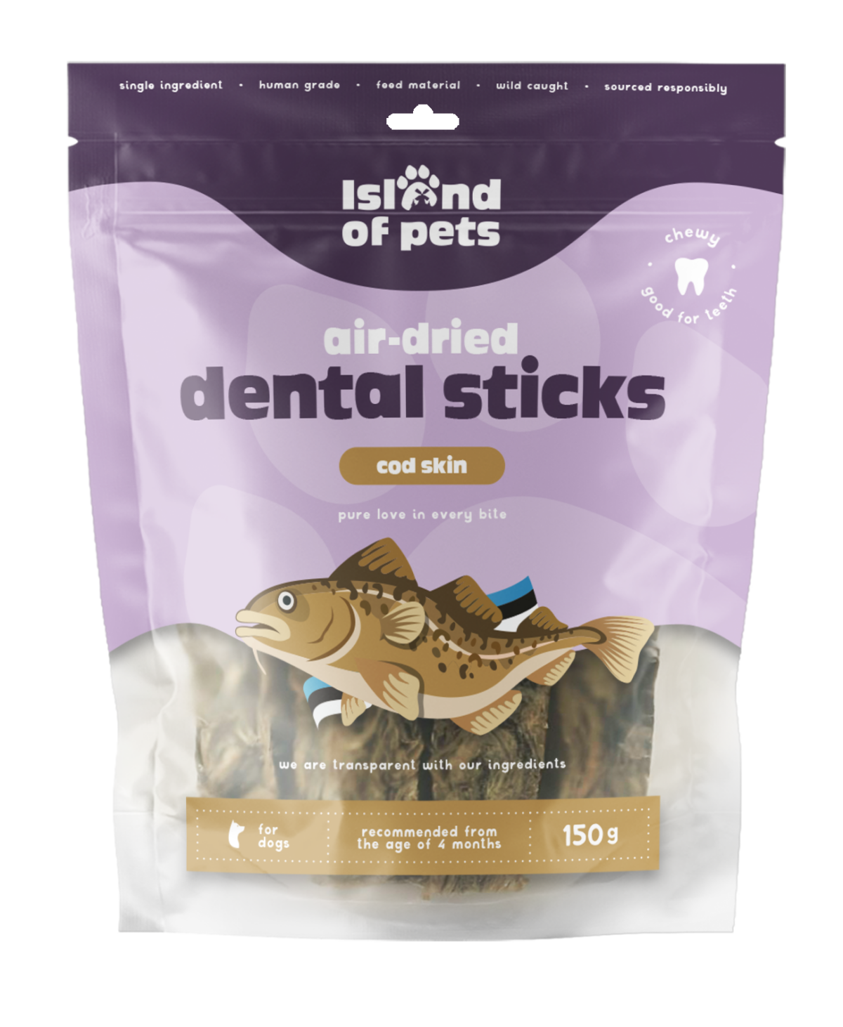 Designed to effectively clean teeth while providing a satisfying chewing experience, these natural cod skin chews help remove plaque and tartar thanks to their coarse texture. They support healthier gums, stronger teeth, and fresher breath — all through natural chewing action.